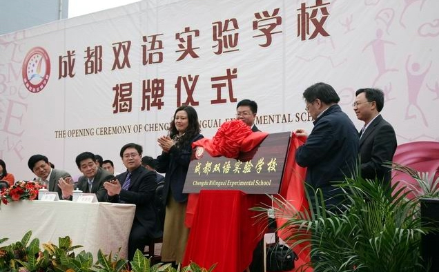 成都双语实验学校是由市政府命名的一所九年制公立学校,有三个校区。在双语实验学校命名大会上,成都市副市长、省教育厅和市、区教育局领导均出席,足见重视程度之高。