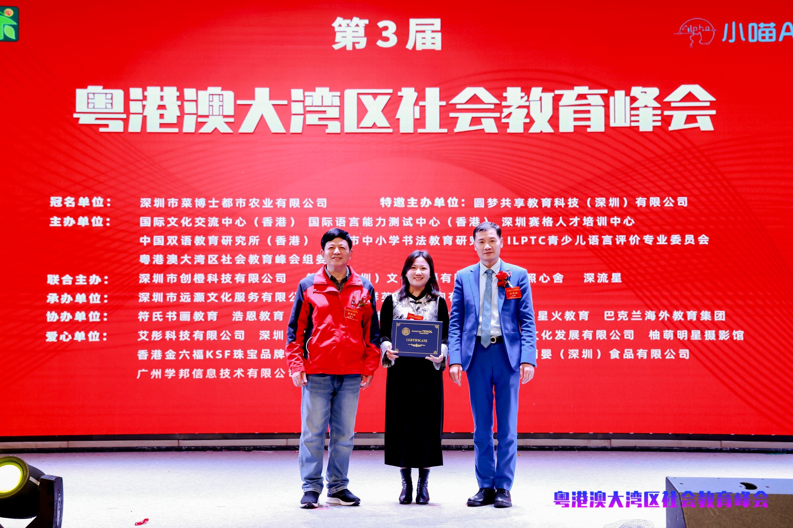 同时,峰会得到了国际文化交流中心(香港)、国际语言能力测试中心(香港)、深圳赛格人才培训中心、中国双语教育研究所(香港)、深圳市中小学书法教育研究会、ILPTC青少儿语言评价专业委员会、创橙科技、月照心舍、深流星、简美(深圳)文化传播等多家机构的支持主办。此外,艾彤科技、欧也教育、乐知之文化、柚萌明星摄影馆、香港金六福KSF珠宝品牌管理集团、领航金刚石工业集团、哺婴(深圳)食品有限公司、广州学邦信息技术有限公司、香港妆嫁三金、卓越星火、香港金嫁福珠宝等机构协办,远灏文化、群英教育承办,社会企业勇担社会责任,为峰会的成功举办提供了有力保障。