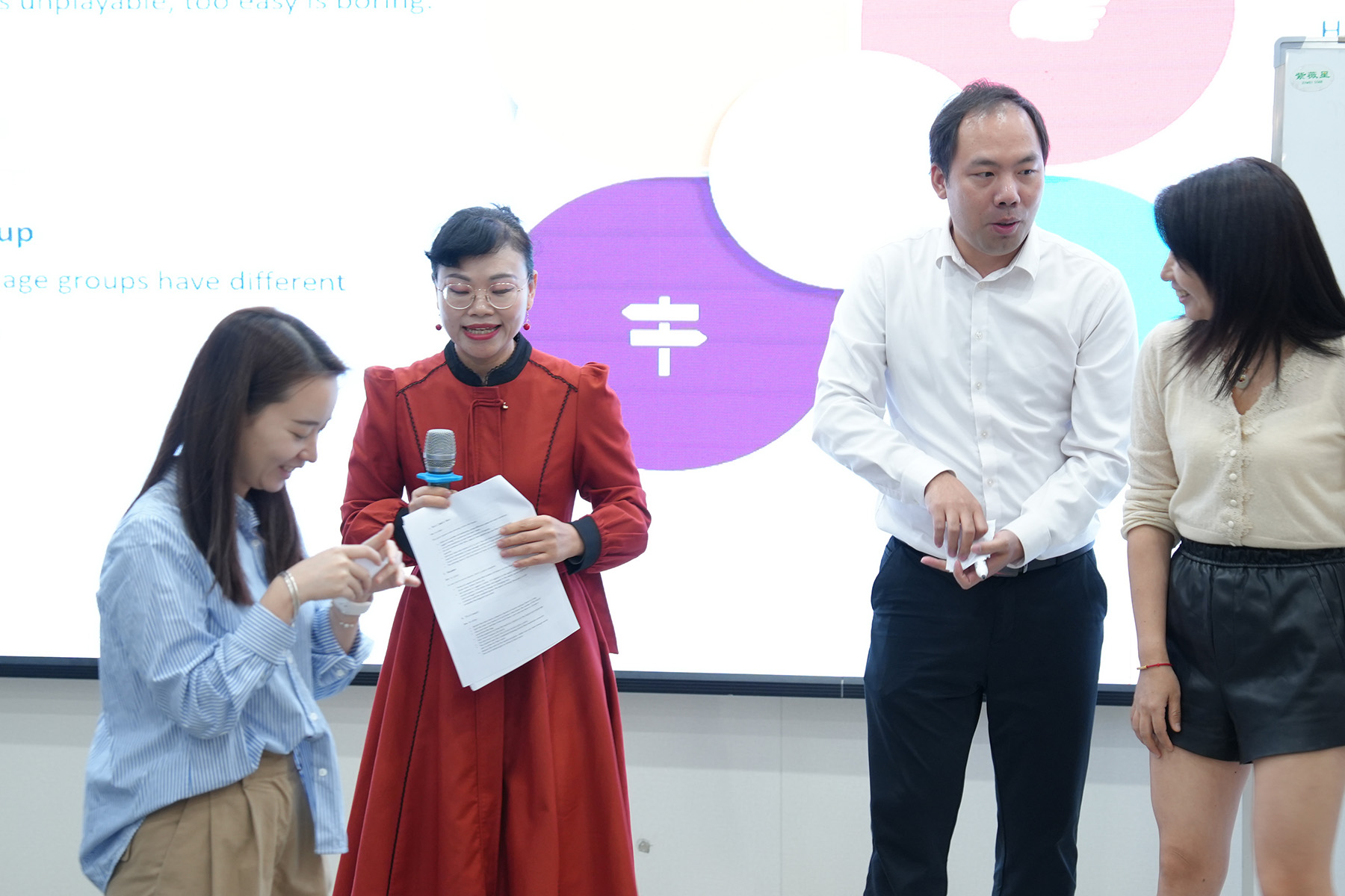 本次师训中,Bob老师以《游戏对课堂教学的高效运用》为题,巧妙地将理论与实践相结合,通过生动的互动环节,让在场的每一位教师都沉浸在了教学创新的欢乐和惊喜中。老师们不仅领略到了游戏化教学的魅力,更在Bob老师的引导下,亲自上手实操,将所学所得转化为教学实践中的宝贵财富。