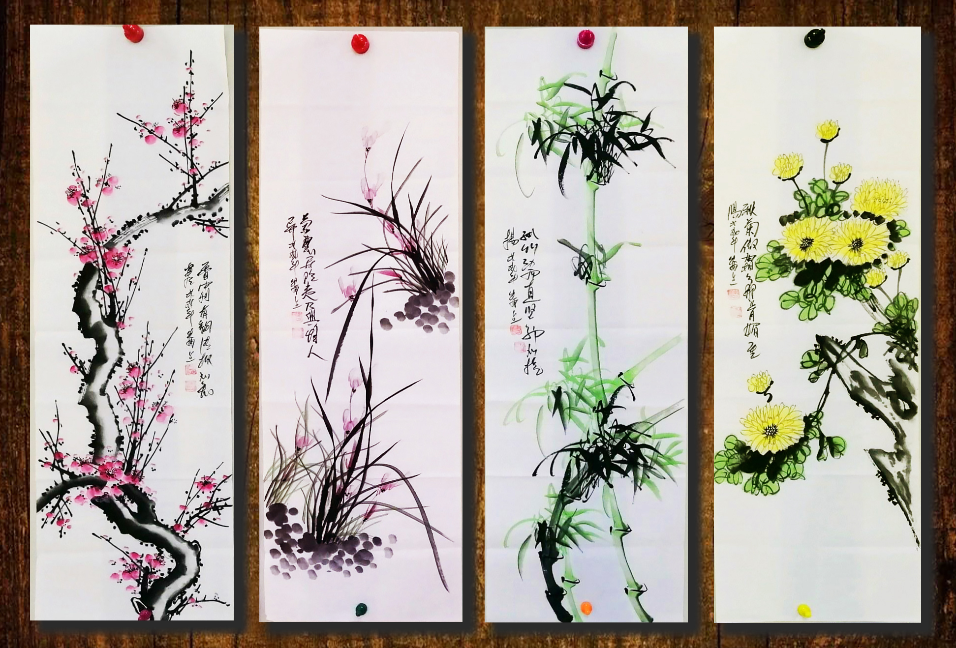 没想到一位老外突然指着一组条幅,4幅,请欧文介绍一下画着一些花花草草的画有啥特别意涵。