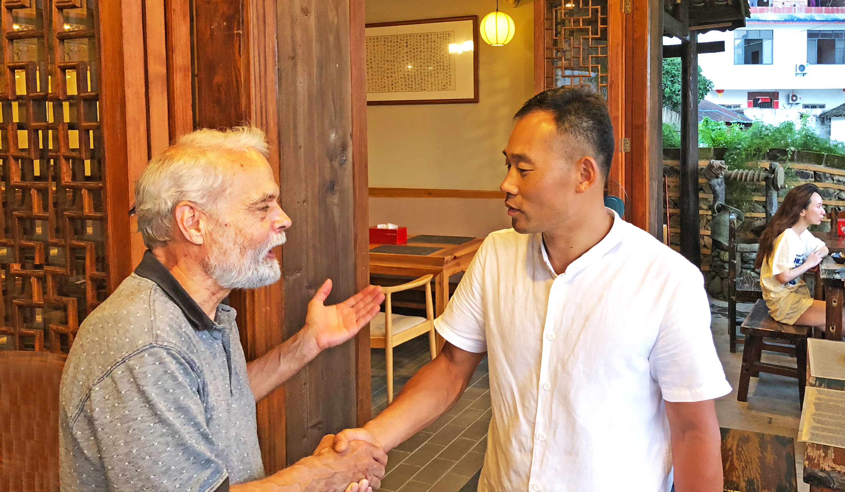 是的,他是陈文刚(英文名: Richard Chen), 现在可不简单。除了“阳朔乡村振兴促进会”副会长、阳朔英语俱乐部主席等头衔,他还拥有阳朔著名的“水云阁”、“墨兰山舍”两家精品民宿酒店,固定资产数千万。他创办的“水云阁”被推举为广西民宿协会副会长单位。而“墨兰山舍”则先后被评为桂林市和广西自治区优秀民宿,2020年在全国甲级民宿榜上有名。媒体报道屡见不鲜。