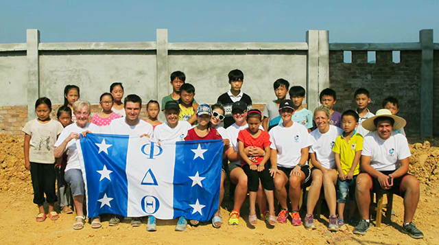 2014年,陈文刚携加拿大外国朋友远赴贵州省从江县山区一所苗寨小学访问,并捐助款物,修缮校舍。(陈文刚/摄)